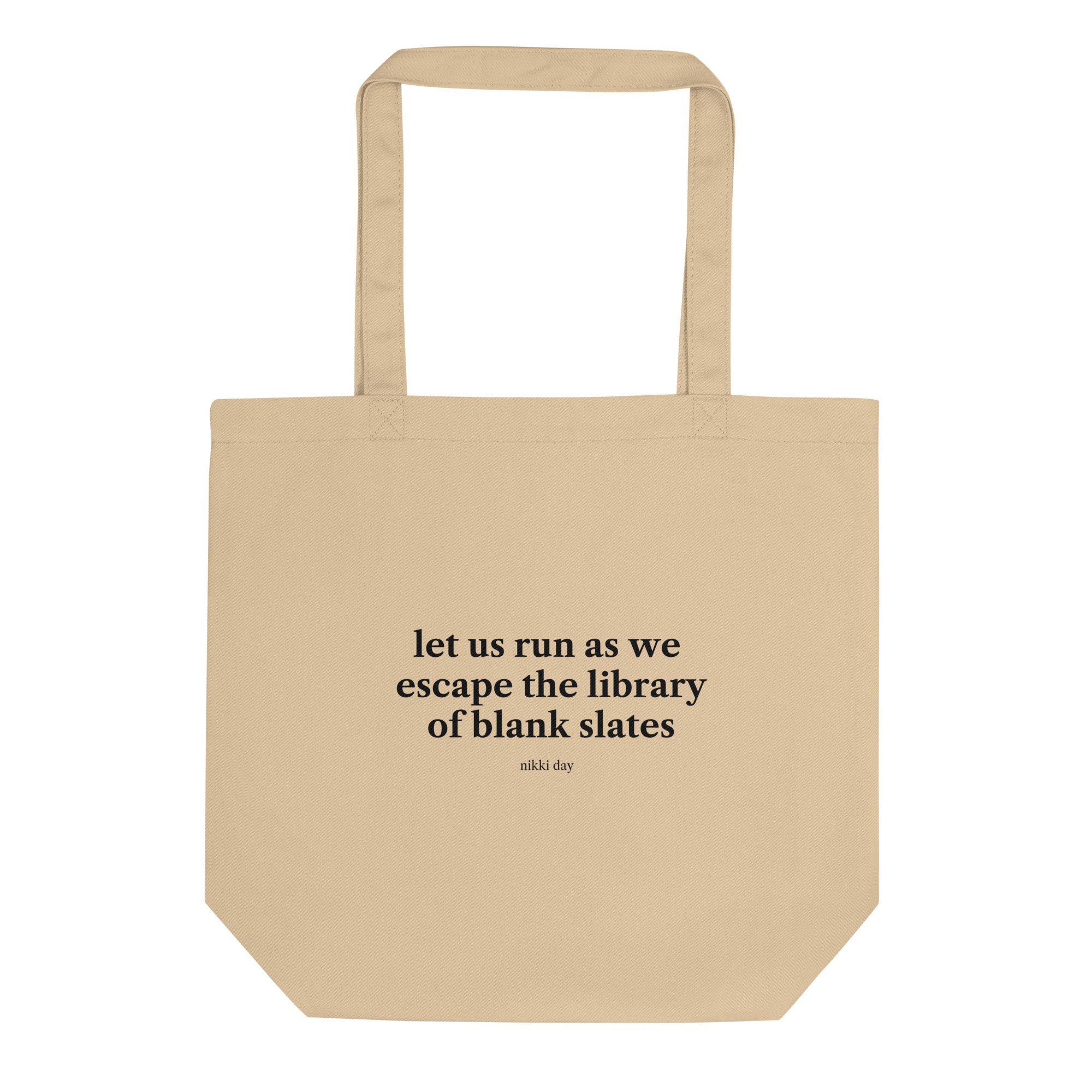 Shop › let us run as we escape the library of blank slates - Tote Bag Image 1 of 1 let us run as we escape the library of blank slates - Tote Bag $20.50 "let us run as we escape the library of blank slates" Add To Cart Added! "let us run as we escape the library of blank slates"